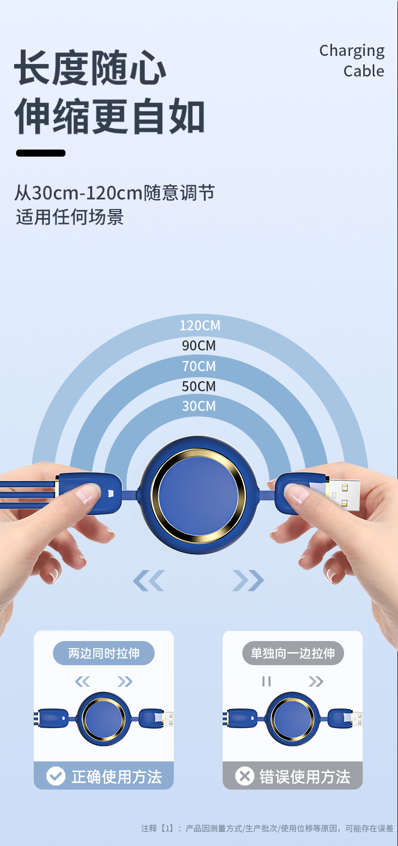 幸运石伸缩线数据线,小巧的尺寸,长度随心伸缩更自如